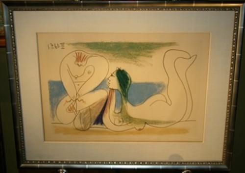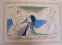 商品No:8 作者:Picasso Pablo 作品名:Les Baigneuses サイズ:33cm×50cm 価格:お問合せ下さい 1961年の作品。元ココシャネルの所有として有名な有色デッサン。オイルキャンバスではないためピカソ作品にしてはお求めやすい価格です。 |
