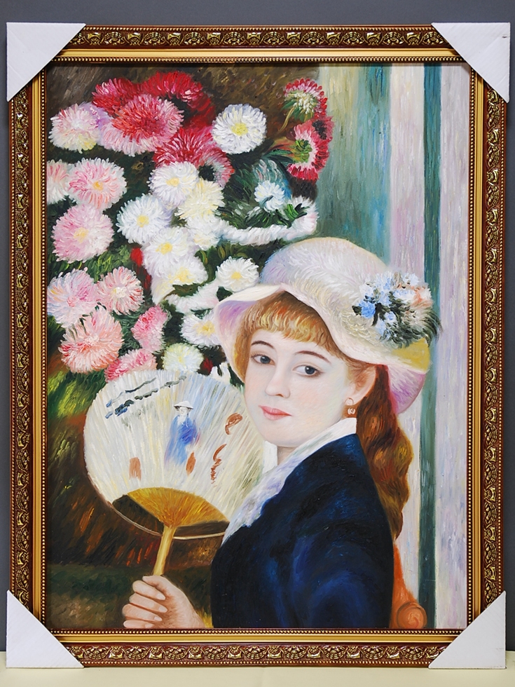商品No:P-10 作者:ルノワール 作品名:団扇を持つ少女 キャンパスサイズ:80cm×60cm 販売価格:25,000円 |