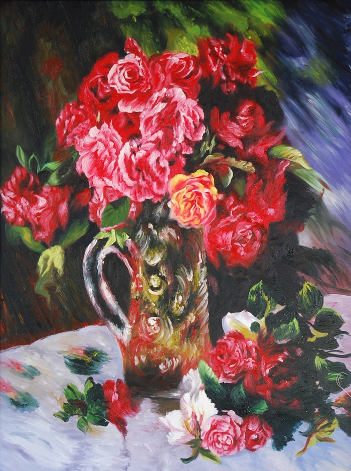商品No:P-16 作者:ルノアール 作品名:薔薇 キャンパスサイズ:80cm×60cm 販売価格:22,000円 |
