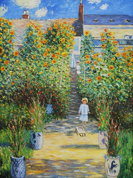 商品No:P-24 作者:クロード・モネ 作品名:モネと庭 キャンパスサイズ:60cm×80cm 販売価格:24,000円 |