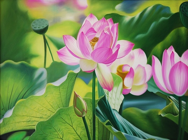 商品No:P-31 作者:写真精密模写 作品名:蓮の花 キャンパスサイズ:60cm×80cm 販売価格:32,000円 |