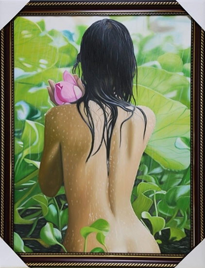 商品No:P-32 作者:写真精密模写 作品名:蓮の花と裸婦後ろ姿 キャンパスサイズ:80cm×60cm 販売価格:35,000円 |