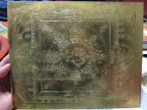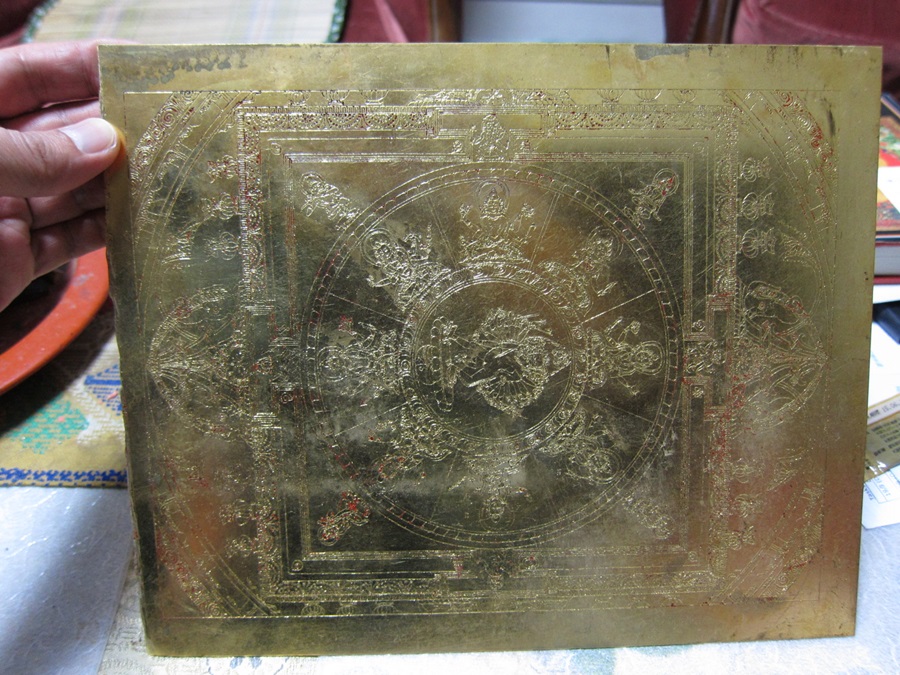 商品No:T-47 金属板金箔曼荼羅 サイズ:25.5cm×21cm 時代:不明 価格:88,000円 制作年代は不明ですが、金属の板に細かく曼荼羅が彫られ表面に金箔が施されています。 |